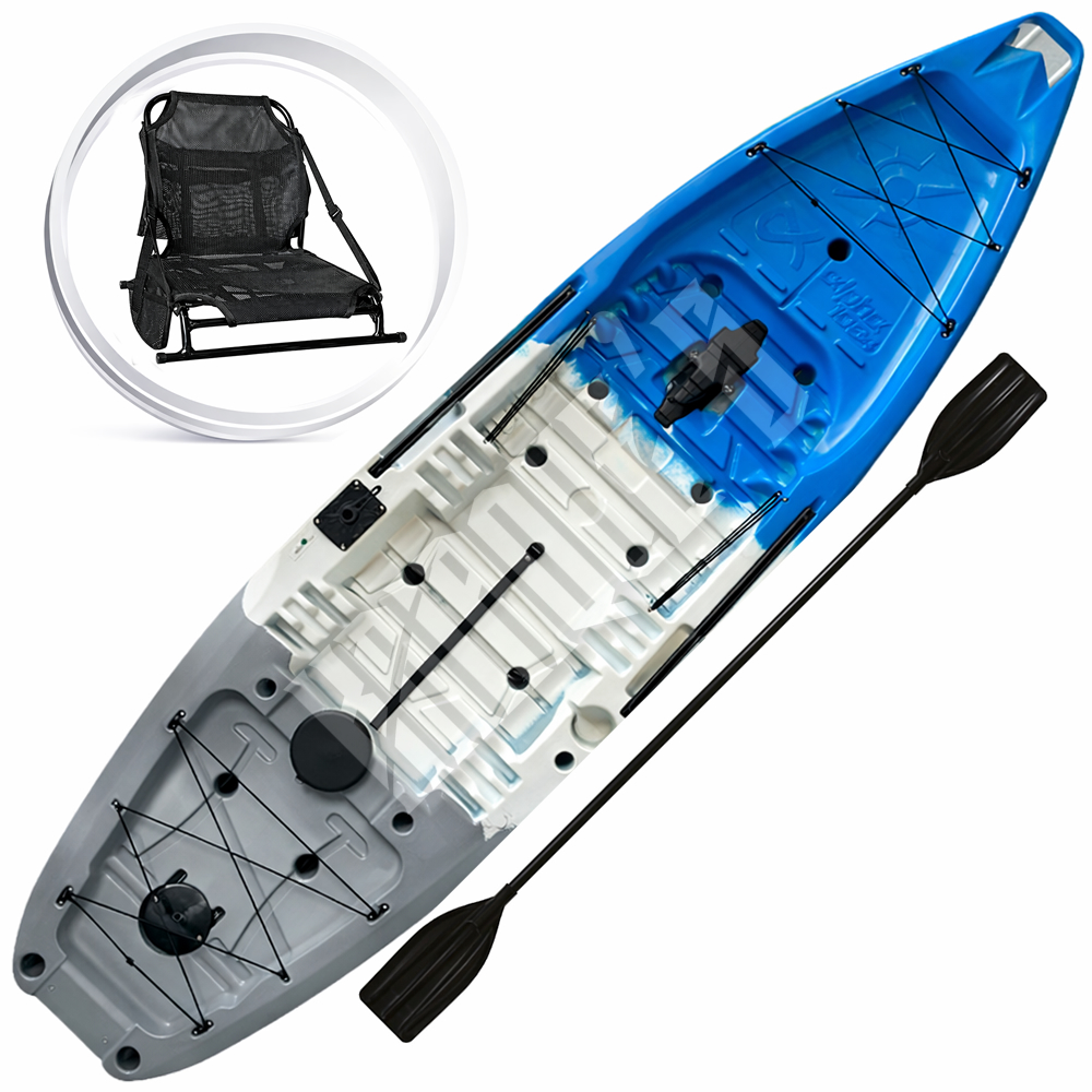 O modelo é ótimo no remo, mas também é preparado para receber sistema de pedal, ampliando as possibilidades de propulsão e tornando o caiaque ainda mais versátil para diferentes estilos de navegação.